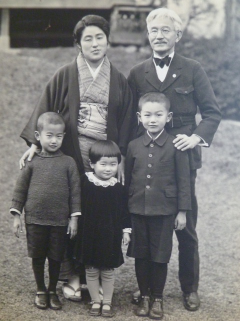 写真帖 昭和8年頃の星家。 後列左から、母・精(せい)、父・一(はじめ) 前列左から、弟・協一(きょういち)、妹・鳩子(やすこ) 親一(のちのペンネーム・新一) |